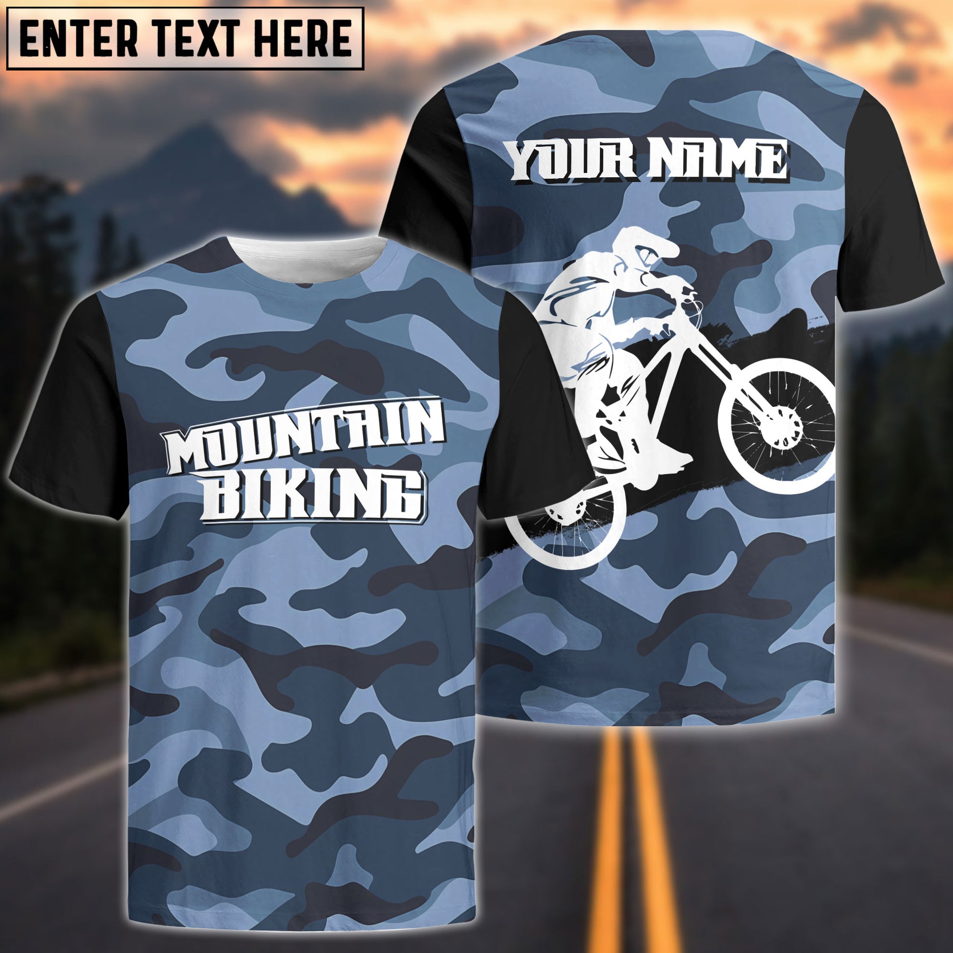 Unisex Mountain Biking Jersey - Custom Name Blue Camo MTB Jersey Cycling Shirt for Cyclist Bike Riders